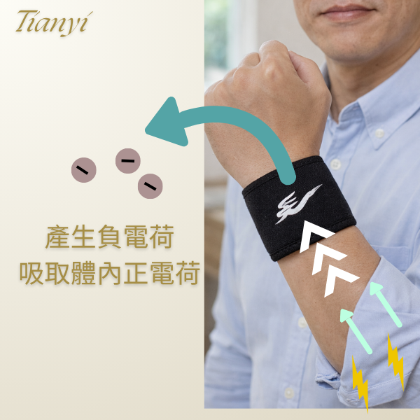 我們的產品可以吸附人體的正電,並中和靜電,也就是釋放負電荷